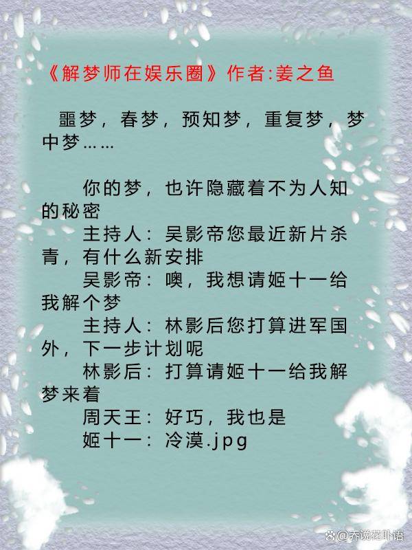 轉(zhuǎn)載請(qǐng)注明來(lái)自昆明文品商貿(mào)有限公司,本文標(biāo)題:《娛樂圈解夢(mèng)師最新動(dòng)態(tài),娛樂圈解夢(mèng)師最新動(dòng)態(tài),如何成為娛樂圈解夢(mèng)專家》