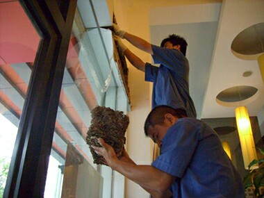東莞東城白蟻公司在南海松崗的某家餐廳取出白蟻巢,“端”出的同時,還發(fā)現(xiàn)有數(shù)個小白蟻群。